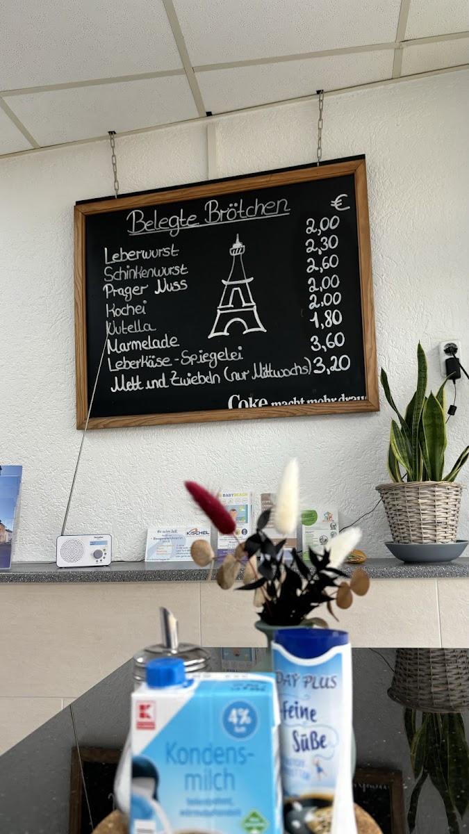 The menu at this café primarily features freshly prepared baguettes and a variety of bread rolls, offering a selection that caters to different preferences. Alongside these main items, coffee is available, providing options suitable for breakfast, coffee breaks, or light meals throughout the day. The menu is structured to accommodate quick orders as well as casual dining, with staff accommodating specific customer requests regarding fillings and preparation.